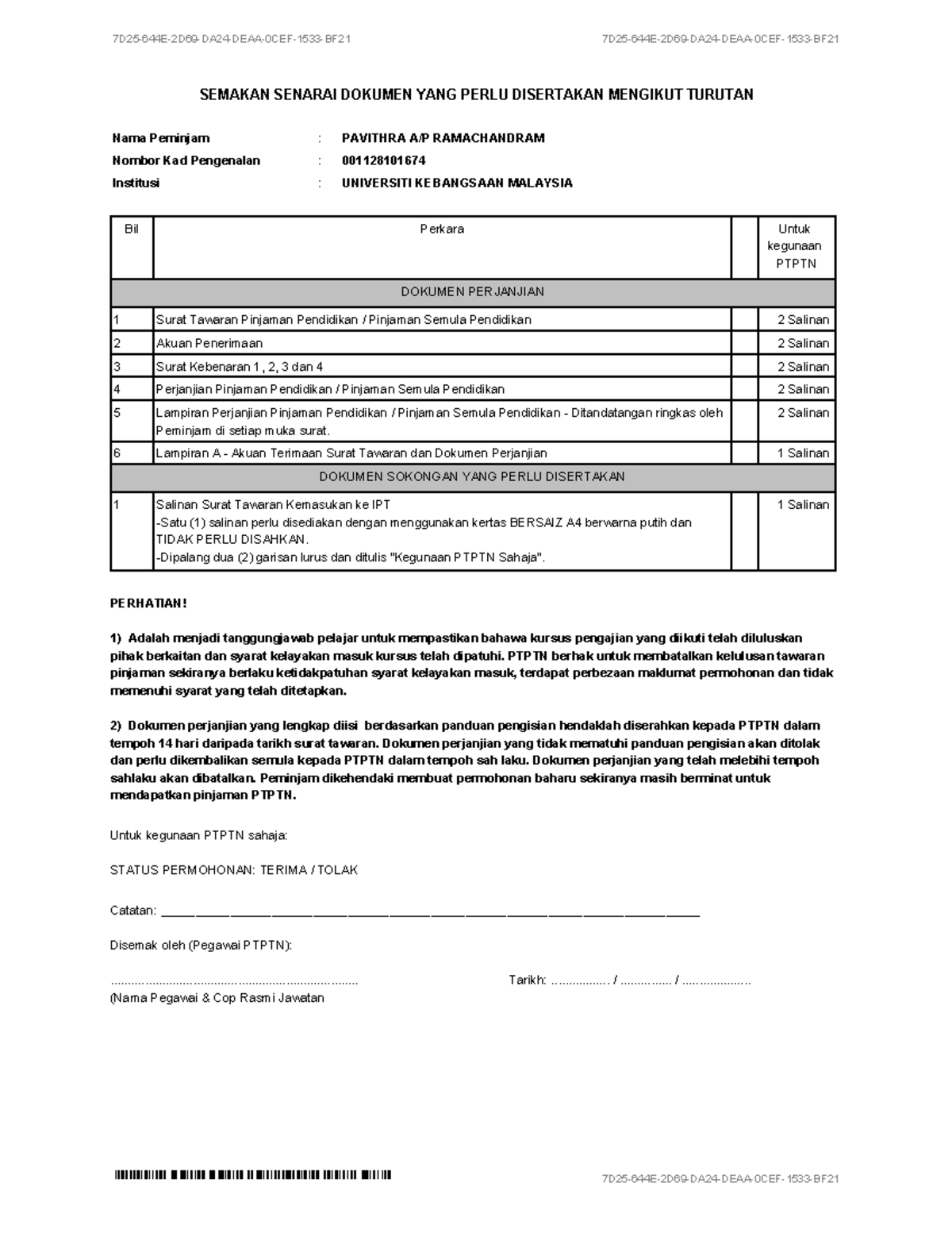 Panduan Pengisian Dokumen Perjanjian Ptptn Pdf Document from demo.vdocuments.mx Borang pengesahan pendapatan ptptn yang telah di isi setelah ptptn diluluskan pemohon perlu sediakan slip gaji terkini. Buy a ptptn pin number from bsn: Assalamualaikum dan salam sejahtera semua. La energía sigue al pensamiento. See more of perbadanan tabung pendidikan tinggi nasional (ptptn) on facebook. Salinan sijil kematian (jika ibu. Places kuala lumpur, malaysia community organizationgovernment organization perbadanan tabung. Skim yang ditaja oleh perbadanan tabung pendidikan tinggi nasional (ptptn) membolehkan pelajar di institusi salina asal borang permohonan pinjaman tidak lagi diterima oleh ptptn.