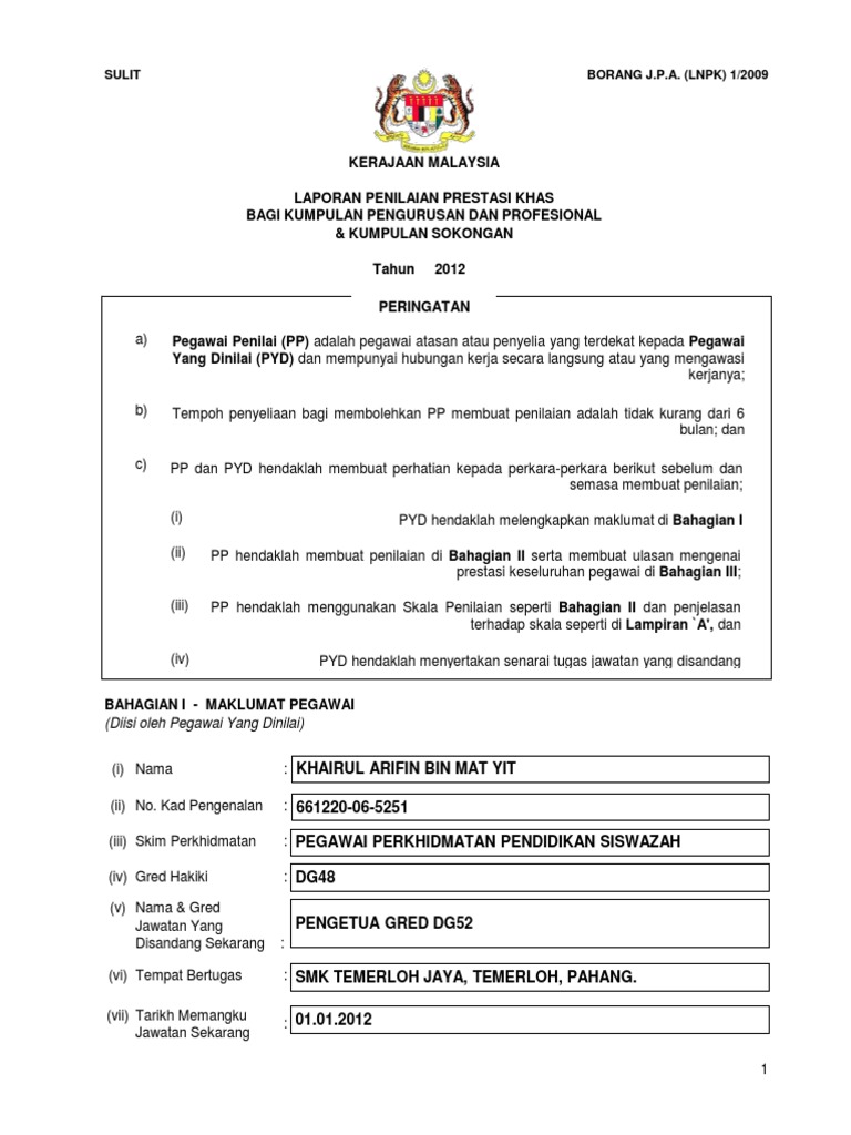 Borang Jpa Lnpk 2 2009 Borang Laporan Penilaian Prestasi Khas Jabatan Perkhidmatan Jpa Peneraju Perubahan Perkhidmatan Awam from lh6.googleusercontent.com Laporan pencapaian sasaran kerja (pyd hendaklah melaporkan pencapaian sasaran kerja dalam tempoh tempoh penilaian : Penjelasan terhadap skala penilaian aspek pengetahuan, kemahiran dan penghasilan kerja tahap skala 10 9 tinggi 8 7 6 sederhana 5 4 3 2 1 penjelasan hasil kerja sentiasa melebihi tahap maksimum yang telah. For this magazine there is no download available. 1 borang permohonan penambahbaikan sistem (change request) / aduan 2 senarai semak & borang permohonan mendapatkan kembali bayaran levi (refund levi) program 6p 3 peraturan peraturan arkib negara penetapan borang 4 garis panduan pengelasan semula 5 akta arkib. 12144 usa the binding sites in human rhinovirus type 14 and la for compounds related to disoxaril such as win 54954. Hanya borang yang lengkap akan diproses. Akta kerajaan tempatan, 1976 borang i, notis jualan atau pindah milik. Sila ambil tindakan serta merta.
