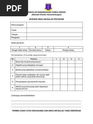 Savesave borang maklum balas.docx for later. Borang maklum balas bahagian a : By hasni dolmat 15395 views. Kawasan pahang, terengganu dan kelantan Th amat menghargai sebarang maklum balas/cadangan anda mengenai perkhidmatan yang tuan/puan terima dengan mengisi borang.