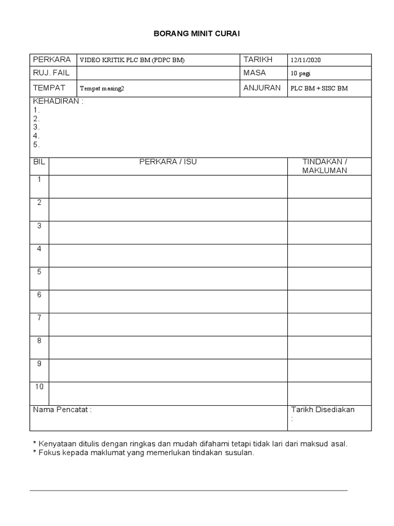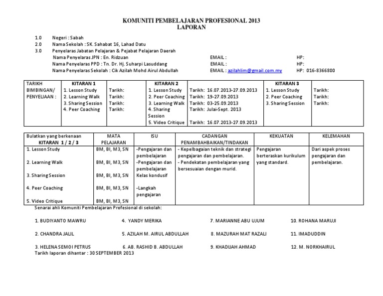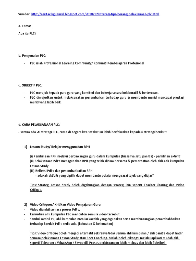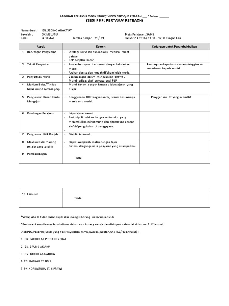 Borang Video Kritik Plc : Komuniti Pembelajaran Profesional Kritikan Video : Senarai borang yang perlu ada dalam laporan plc bagi.
